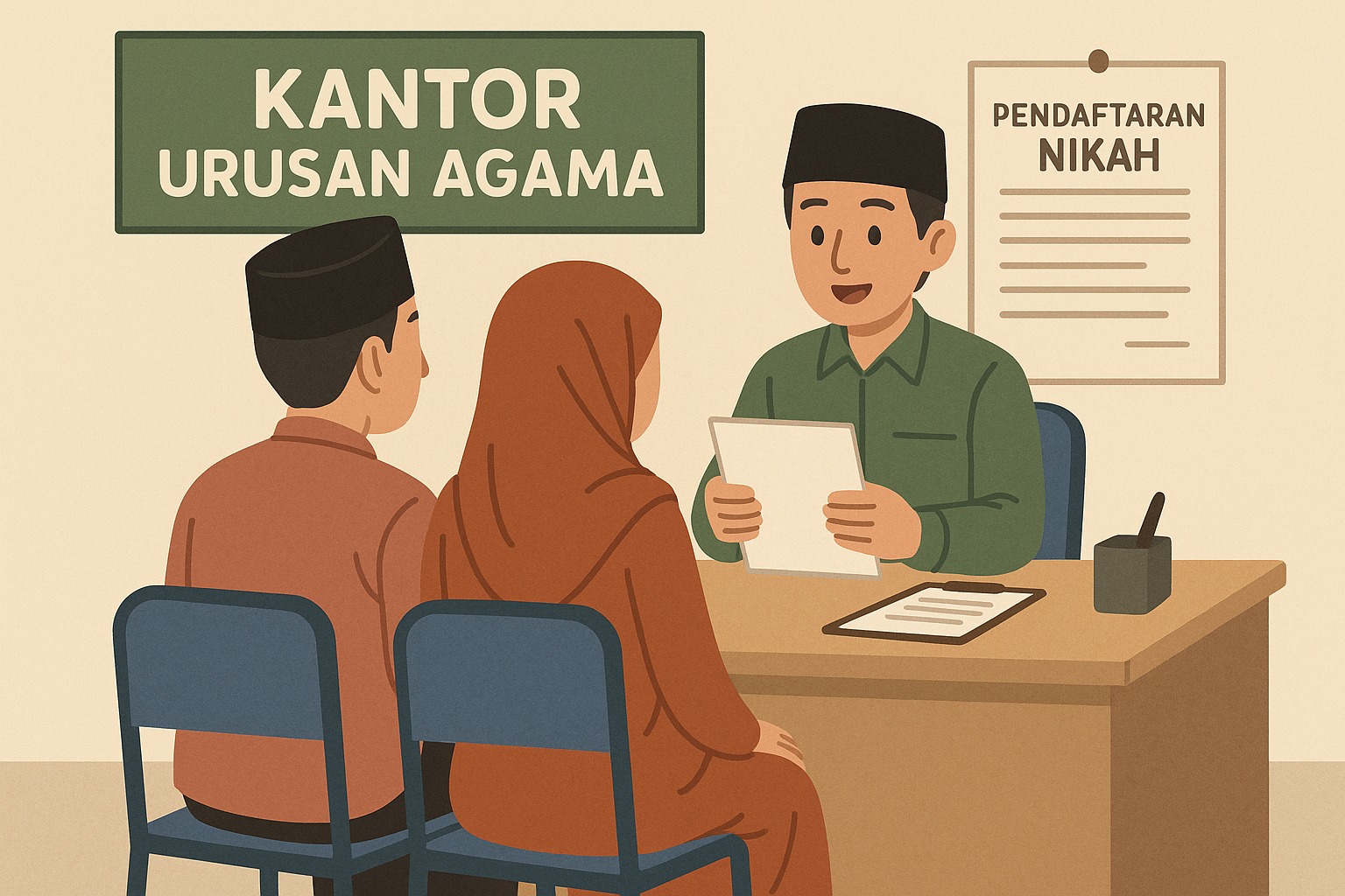 - Datang ke KUA tempat menikah membawa buku nikah dan pasfoto digital dengan background biru maks 500kb.